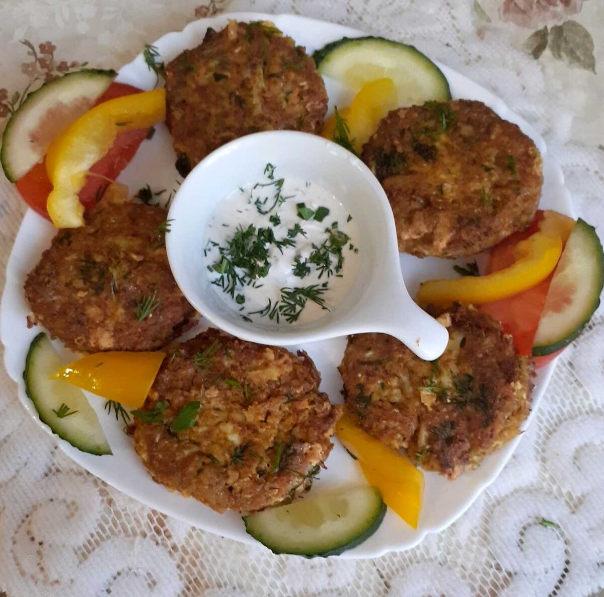 ✓ Капуста цветная — 300 г; ✓ Яйца — 2 шт.; ✓ Отруби овсяные — 2 ст. л.; ✓ Псиллиум — 2 ч. л.; ✓ Сыр тёртый — 25 г; ✓ Специи (смесь перцев, сушеный чеснок), соль — по вкусу; ✓ Зелень. Цветную капусту натёрла, добавила яйца, предварительно взбив ихвенчиком, отруби, псиллиум, сыр (у меня — моцарелла), соль и специи, рубленую зелень. Все хорошо вымесила и дала постоять минут 10, чтобы разошлись отруби и псиллиум. Масса получилась не жидкая и не густая. набирала ложкой, формировала и на разогретую сковороду, смазанную растительным маслом. КБЖУ на 100 г — 114/7,6/7,1/6,9. К котлетам сделала сметанный соус: сметана, горчица, чеснок, зелень. От наших друзей: Валентин Смирнитский, актёр, народный артист Росии, на Радио Медиаметрикс Больше общения и рецептов - в группе "Рецепты для диабетиков" в ВКонтакте! Рецепт на странице Автор рецепта – Tatiana Azovochka © Почтенный возраст Online и Рецепты для диабетиков