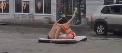 В посёлке Южном Динского района Кубани затопило половину улицы, и местная жительница сняла юмористическое видео со своим супругом, изобразив, что они плавают на надувном матрасе около местной «Пятёрочки». Об этом 9 февраля стало известно благодаря видеоролику, опубликованному в Telegram-канале «МЕДИА ГИД ЮЖНЫЙ». СМОТРЕТЬ ВИДЕО В посёлке Южном затопило половину местной улицы Черноморской несмотря на то, что дорогу здесь отремонтировали в прошлом году. «Тротуаров не видно, они все в воде, дети не могут пройти в школу. Школьные автобусы по этой улице уже больше двух недель не возят детей, их временно отменили по данному маршруту, т.к. дорога не безопасна», - пишут в сообществе «Жесть Краснодара и Края» в соцсети «ВКонтакте» Местная жительница вместе со своим супругом решила поиронизировать на данную тему и сняла юмористическое видео. Они вдвоем, одетые в купальники, принесли к «Пятёрочке», расположенной на улице Черноморской», надувной матрас и запечатлели себя на нём, в шутку назвав сво