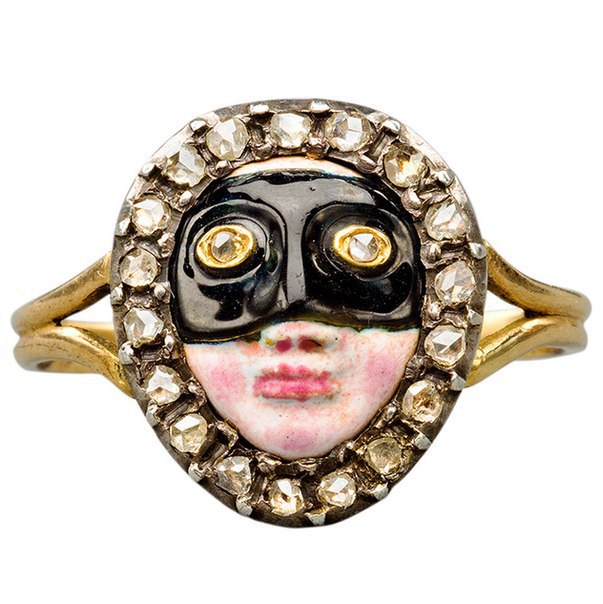 Внимание, руками не трогать! Зарплаты и пенсии не хватит, чтобы расплатиться! Сегодня будет много дорогой красоты. Драгоценности и шедевры искусства ждут вас! Приготовьтесь, будет много презренного металла без хронологической последовательности. 1) Золотое кольцо, инкрустированное бриллиантами, с изображением лица в венецианской карнавальной маске "домино". Италия, XVII-XVIII век. 2) Украшения из могилы предполагаемой королевы Радегунды (королева франков, жена Хлотаря I, дочь короля Тюрингии Бертахара): поясная пряжка, круглые фибулы, булавки для головного покрывала, серьги, кольцо.