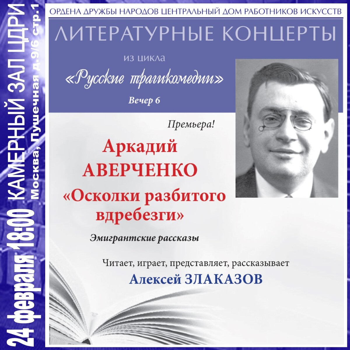 тел./касса: 8(495)624-9347 #литературныйконцерт #АлексейЗлаказов #литературныйвечер #литературнаяафиша #АркадийАверченко #интересноевмоскве #афишамосква #цдри #афиша #москваафиша