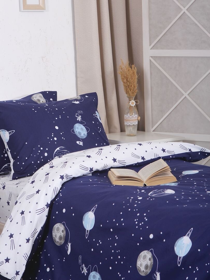 Детская комната — это место не только для сна, но ещё и для игр, учёбы и творчества. Сегодня расскажем о том, как создать уютный уголок в детской. Если у вашего ребёнка небольшая спальня, используйте светлые тона — они визуально увеличат комнату. Например белый, бежевый и молочный. А чтобы сделать помещение уютным, дополните обстановку картинами или фотографиями. Подчеркнуть стиль и отделить функциональные зоны в большой спальне можно с помощью различных декораций. Например весёлых наклеек, текстильных подвесок, светильников необычных форм, панно, книг, пледов, ковров, декоративных подушек и т. д. В таком окружении любой ребёнок почувствует себя полноценным хозяином собственного местечка. Яркое постельное бельё задаст позитивный настрой на весь день. Детки будут в восторге! Постельное бельё в данной подборке сшито из сатина и поплина, изготовленных из 100% хлопка. Материалы экологичны и безопасны, а значит, можно не беспокоиться — ребёнку будет комфортно спать. Посетите "ТекстильПро