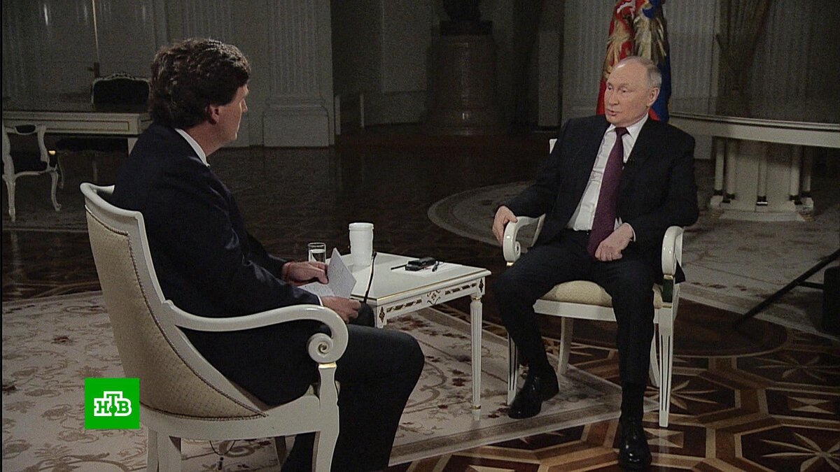 Вышло интервью Владимира Путина американскому журналисту Такеру Карлсону, которое он анонсировал два дня назад и ради которого прилетал в Москву. Бывший телеведущий выложил запись на своей личной странице. Это был очень содержательный разговор и предельно откровенные ответы на самые актуальные вопросы. Как отметил Такер Карлсон, американцы должны знать позицию относительно украинского кризиса не только Владимира Зеленского и западных лидеров, но и российского президента тоже. Первый вопрос касался причин спецоперации. Путин начал ответ с базового урока истории для своего собеседника.