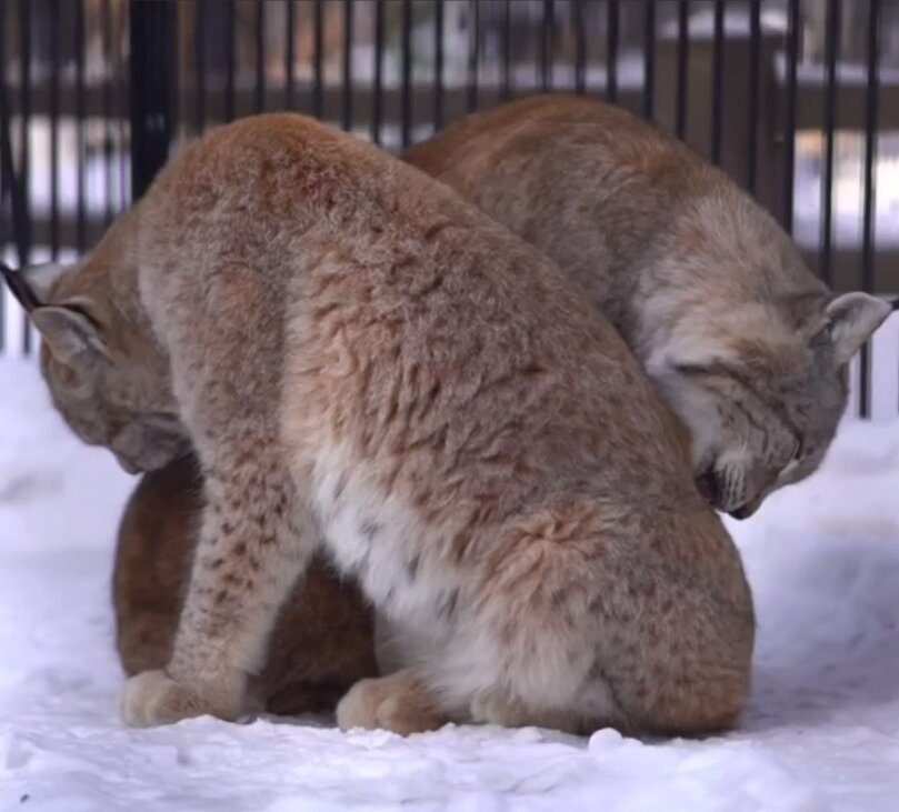 В Новосибирском зоопарке имени Шило поделились милым и забавным видео с рысями. Пара диких зверей заботится друг о друге. Рыси умываются, как обычные домашние кошки, сидя на снегу. Их шерстка блестит на солнце. Работники зверинца успели запечатлеть рысей. Ролик показали подписчикам официальной группы в соцсети "ВКонтакте". Новосибирцев умилили ухаживания животных. "Нежность наших рысей. Вы также всегда можете проявить свою заботу о своих близких – целуйте и обнимайте их почаще", – указано в посте, опубликованном 8 февраля. К видео добавили нежную мелодию. Стоит отметить, что обычно брачный период у рысей происходит в феврале-марте. Потомство появляется в апреле или в мае. Ранее "Бердск-Онлайн" писал, что в Новосибирске спасли белоснежного щенка, застрявшего за батареей. Питомца вызволили спасатели МАСС.