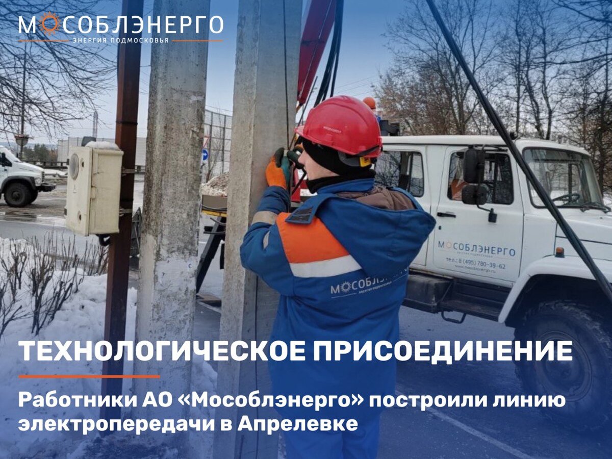 Работники АО «Мособлэнерго» в начале февраля 2024 года завершили строительство кабельно-воздушной линии электропередачи КВЛ-0,4 кВ в г. Апрелевка Наро-Фоминского г.о. Работы проводились на ул. Апрелевской. Всего было построено 350 м воздушной линии и 50 м кабельной. А также произведена установка 8 железобетонных опор. ЛЭП предназначена для присоединения к сетям новых абонентов. Также выполнение мероприятий позволило усилить схему электроснабжения потребителей, проживающих в районе Апрелевской улицы. Строительство КВЛ выполнялось в рамках договоров по технологическому присоединению. АО «Мособлэнерго» подключает к электрическим сетям энергопринимающие устройства физических, юридических лиц и индивидуальных предпринимателей. Техприсоединение выполняется в следующих случаях: при первичном присоединении энергопринимающих устройств к сетям компании, увеличении трансформаторной мощности, изменении категории надежности энергопринимающих устройств и точек присоединения к сети, а также при измен