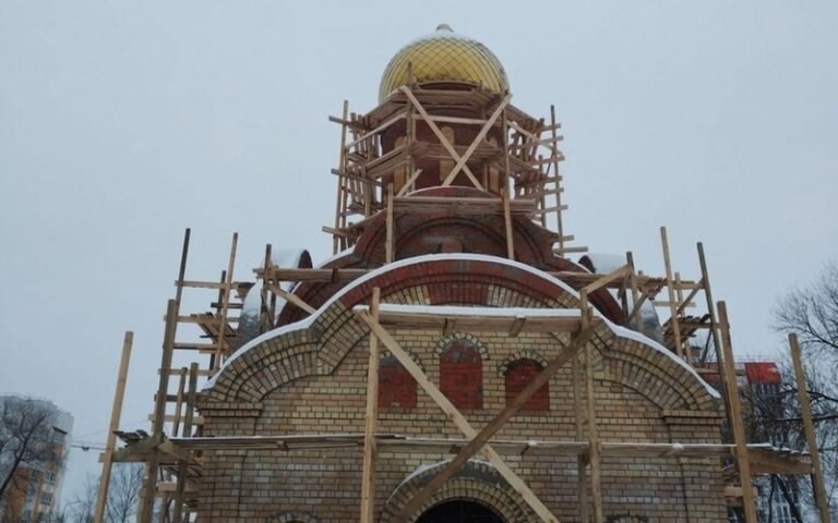 В Саранске на пересечении улиц Серадзская и Фурманова продолжаются работы по возведению Спасского храма-часовни. На днях на стройплощадку был доставлен металл для кровли. “Рулонный металл с полимерным покрытием под цвет меди приобретен стараниями благодетеля. После сбора стропильной системы кровельщики приступят к монтажу крыши из современного материала, который отличается долговечностью и высокой степенью защиты от коррозии”, — сообщили в Саранской епархии РПЦ. Сами строители говорят, что перед монтажом кровли им нужно будет оштукатурить и покрасить барабан храма. Сделать это необходимо, чтобы впоследствии не повредить кровлю.