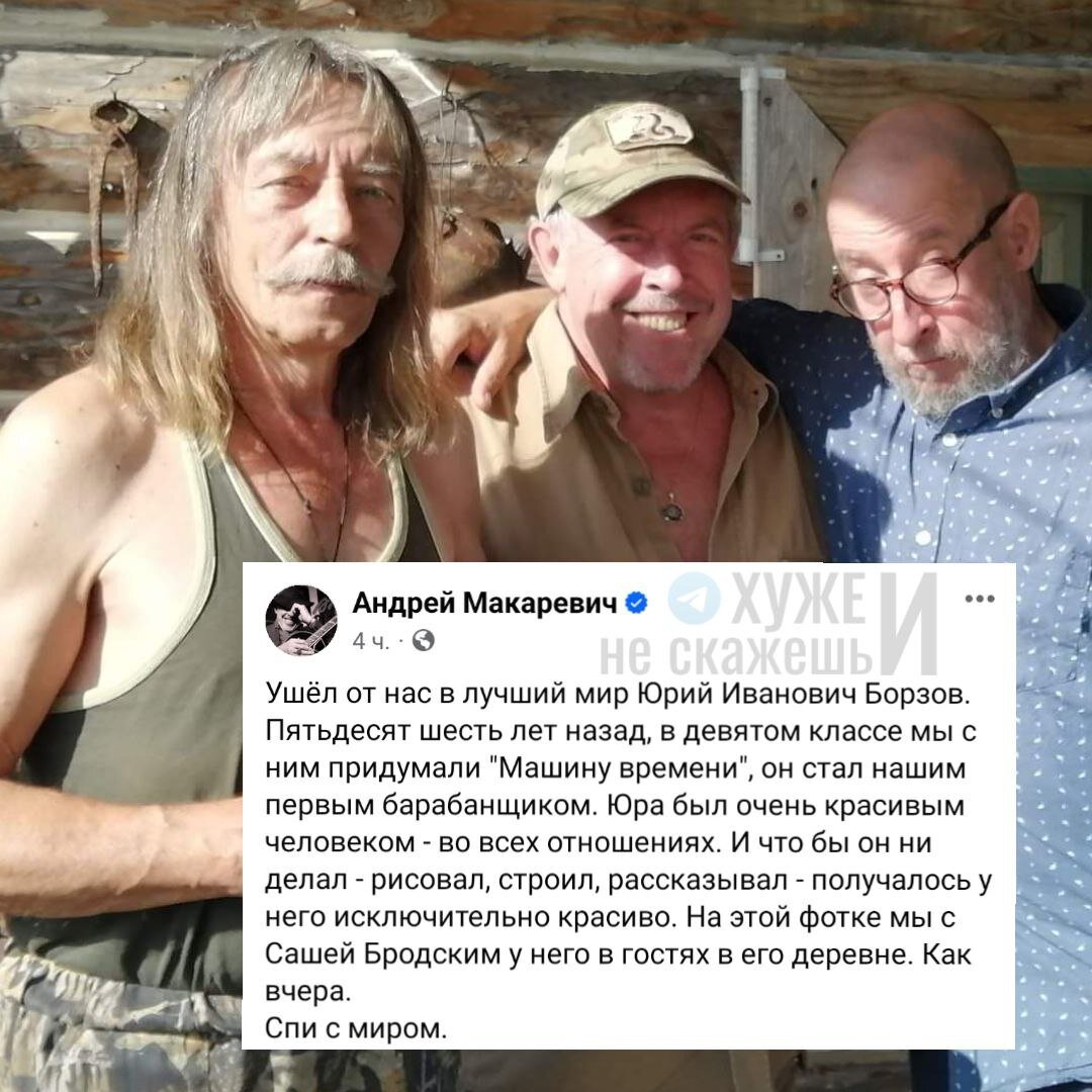 Иноагент и "машинист" Андрей Макаревич* опубликовал скорбящий пост по ушедшему накануне в России другу и соратнику по "Машине времени", автору, кстати, звучного названия, Юрию Борзову. Музыкант ушел из жизни после продолжительной борьбы с онкологическим заболеванием. На этом, видимо, свой скорбный долг Андрей Вадимович посчитал законченным. Приезжать на похороны друга, которого знал более полувека, Макаревич отказался, сославшись на работу. Для понимая, нынешняя работа успешного российского музыканта и иноагента Макаревича- винные вечера на "земле обетованной". Иноагент Андрей Вадимович и его миролюбивая супруга Эйнат Кляйн, раскритиковавшая русского врача, за то, что он продолжает лечить российских детей, проводят регулярные, платные дегустации собственных вин. За энное количество шекелей все гости, если верить рекламе, размещенной на странице самого Андрея Вадимовича, получат "неограниченный доступ к вину, изысканными закусками от профессионального шефа, выступлениями Эйнат и Ан