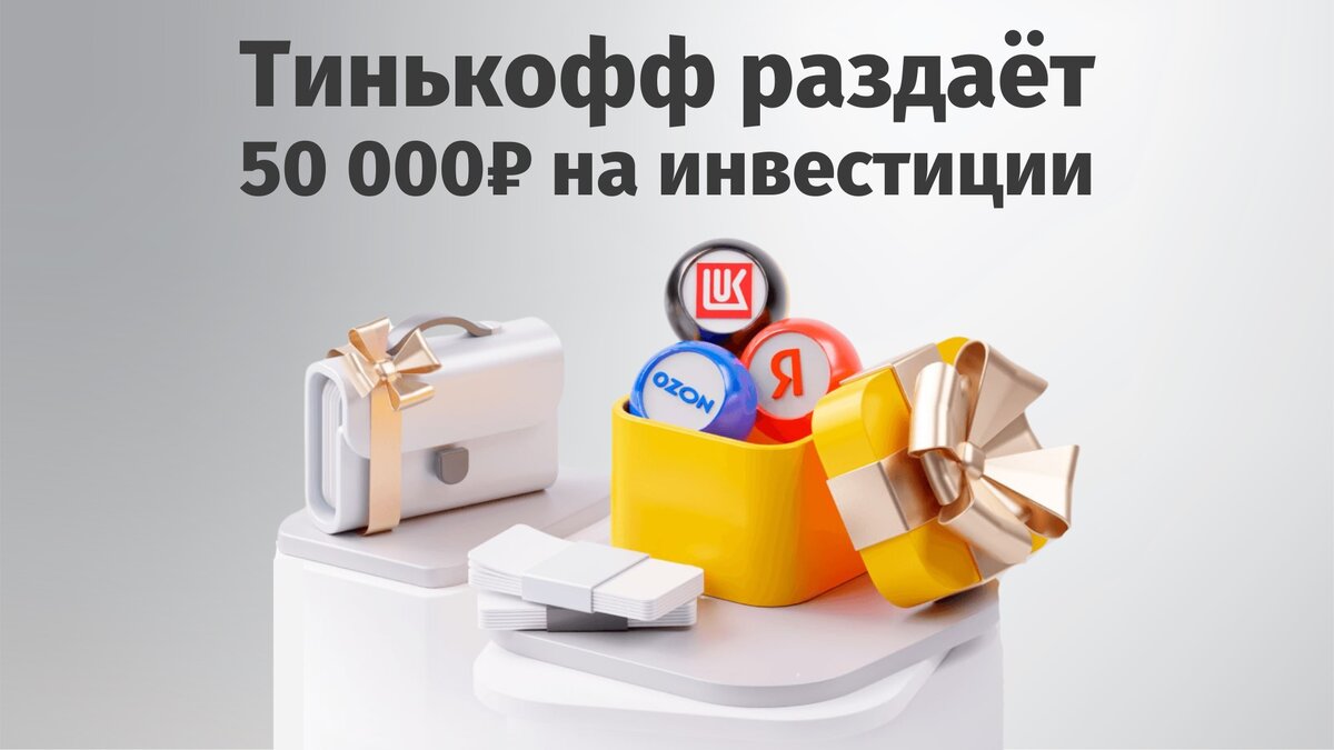 На днях Тинькофф запустили новую акцию, которая называется «Попробуйте инвестиции!» Суть её в том, что всем новичкам Тинькофф дарит 50 000 ₽ и предлагает на эти деньги купить акции одной из 3х компаний на выбор - Яндекс, Лукойл или Озон. Затем продержать эти акции у себя в портфеле какое-то время, после чего можно будет их продать, а прибыль забрать себе. А если дохода не будет — возмещать убытки не нужно! Я составил детальную инструкцию со скриншотами как воспользоваться этой акцией. А ещё написал как из неё извлечь максимальную выгоду. ИНСТРУКЦИЯ КАК ПОЛУЧИТЬ 50 000 ₽ В акции могут принять участие новые клиенты, у которых нет брокерского счёта. А также те, у кого счёт есть, но он ни разу не пополнялся. Для участия в акции вам нужно: 2. На вашем счёте появятся ₽50 тысяч рублей. Вывести их нельзя, но можно купить на них акции. До 15 марта выбрать 1 из 3 виртуальных акций на выбор — Лукойла, или Яндекса, или Ozon. 3. Докупить любые ценные бумаги на сумму от 7 500 ₽ за свой счет. 4. Сто