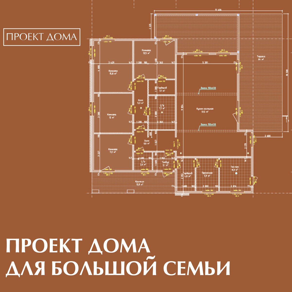 Любите семейные тусовки, часто приглашаете гостей? Тогда наш проект с четырьмя жилыми комнатами — для вас. Дом для семьи из 4-7 человек площадью 227 м2. Здесь много места для общения и общих развлечений: 💫 кухня-гостиная площадью 51,5 м2 — как 2-комнатная квартира; 💫 целых две террасы – 20 м2 и 64 м2. Можно объединить их в одну, а можно, как в проекте, разделить на открытую и застекленную. Сделать во второй части зимний сад, бильярдную или место для посиделок в дождливые дни. В доме есть приятные мелочи: 💫 прачечная — удобно и эстетично, ведь бытовые делишки останутся за закрытыми дверьми; 💫 две гардеробные и два санузла — то, чего так не хватает в старых квартирах. А ещё непривычной в наших краях чертой проекта стала плоская крыша. Она даёт участку ощущение простора. И нет, на ней не скапливается снег. Его сдувает ветер. Стройте смело с «ЭкоДомом», и в вашем доме всегда будет тепло, светло и просторно. Строим дома под ключ с 2014 года 🏡