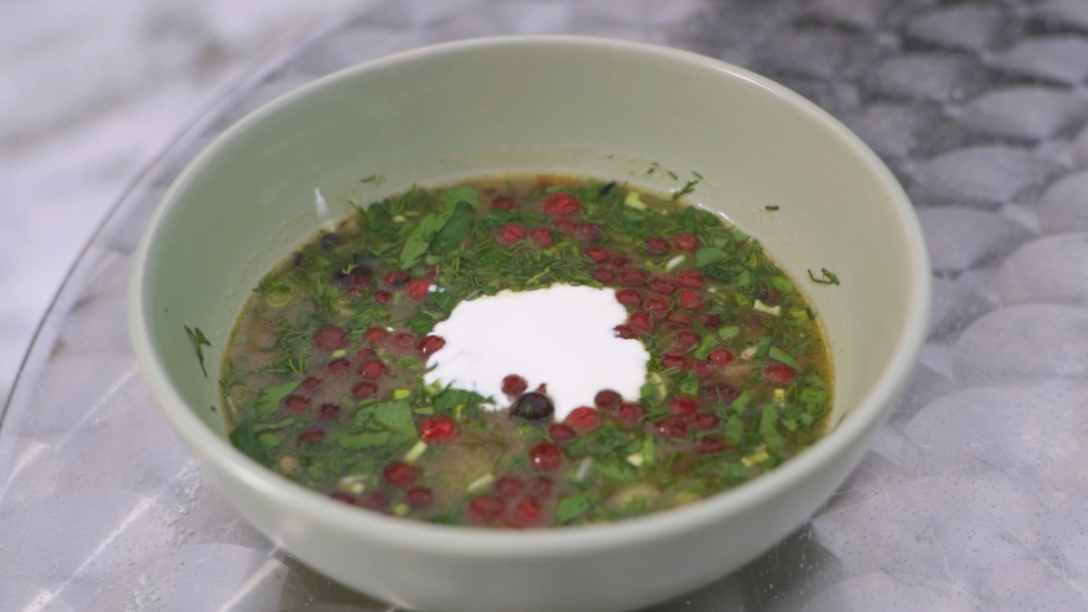 🫐 Делаем мочёные ягоды: Брусника — 100 г Смородина — 100 г Белый винный уксус — 200 мл Вода — 200 мл Сахар — 200 г Соль — 10 г 1. Для маринада смешайте в кастрюле уксус, воду, сахар и соль. Затем поставьте её на плиту на средний огонь. Доведите до кипения. 2. Ягоды положите в отдельный бокс и залейте горячим маринадом. Настаивайте 12 часов. 🥬 Варим щи: Перепёлки — 3 кг Вода — 5 л Сухие грибы — 100 г Маринованные грибы — 500 г Квашеная капуста — 1 кг Солёные огурцы — 500 г Репчатый лук — 500 г Картофель — 1 кг Чеснок — 50 г Перловка — 300 г Морковь — 500 г Укроп — 150 г Петрушка — 150 г Зелёный лук — 100 г Сметана — 500 г Лавровый лист — 3 г Кориандр — 15 г Перец чёрный (горошком) — 10 г 1. Срежьте с перепелов мясо и уберите в холодильник. Кости от перепёлки промойте под проточной водой, затем положите в кастрюлю, залейте водой и поставьте на плиту. 2. Доведите до кипения. Затем снимите пену и продолжайте варить на среднем огне в течение 2 часов. 3. По готовности процедите бульон от к