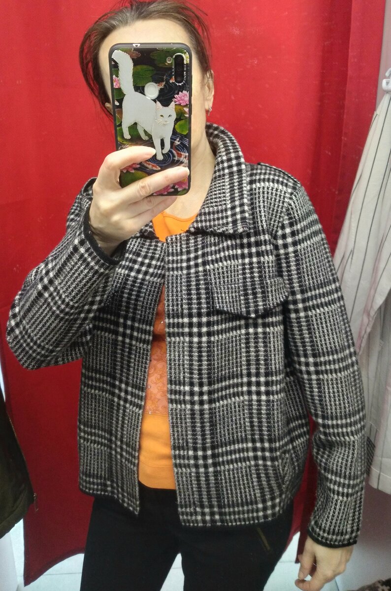Здравствуйте, сегодня обзор из нового секонда, максимальная скидкой - 490 за кг. Плохо, что на сайте до сих пор нет расписания скидок, продавцы тоже ещё не очень в курсе, как бы по средам цены будут уменьшаться. Ну посмотрим. Жакет понравился, но полиэстер. Жаль, что без застежки, внизу на полочке сделана вытачка, не знаю с какой целью, может чтобы пузырился жакет. На фотке видно, что к низу он немного сужается, как раз там где сужаться в соответствии с женской фигурой не должен. Белый жакет в тонкую полоску. По моему прекрасный вариант на прохладный летний вечер ( и не только вечер )). Ткань лёгкая, но плотная и не светится. Жаль, что без застежки, но летом это можно пережить или что-то придумать. Мне кажется, что за такую цену придираться к вещам не стоит, хочется чудес, но чудес на всех катастрофически не хватает. Обходимся тем, что есть))) А есть акрил. Мягкий трикотаж с неплотной вязкой и большим воротником хомутиком. Вешалки часто уродуют трикотаж, все растягивается и грустн