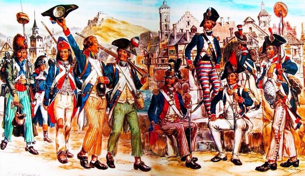 Всем любителям военной истории и униформы знакомы замечательные, богато иллюстрированные книги франко-бельгийских художников-униформологов Лилиан и Фреда Функенов: “Энциклопедия вооружения и военного костюма” издательства “ Астрель”. Издание поистине всеобъемлющее. Однако меня всегда удивляло отсутствие в томах посвящённых европейским армиям XVIII в. сведений о французской армии Революционного периода. Недавно я узнал, что у данных авторов есть отдельная книга посвящённая этой теме, на русском языке не издававшаяся. Не владея, к сожалению, французским, я решил воссоздать хотя бы иллюстративный материал. Нырнув в глубины Интернета я извлёк из него искомые картинки, а при помощи ГУГЛа, собственных скромных познаний и здравого смысла воссоздал пояснения к ним. Предлагаю сей труд вашему вниманию. Приятного просмотра!