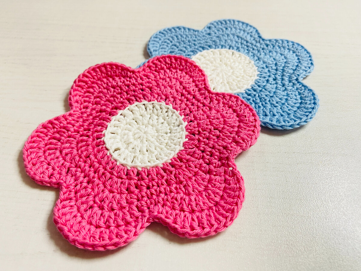 Мастер-класс по вязанию крючком подставки под чашку в форме цветка.