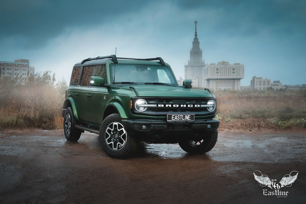 Ford Bronco – некогда классический американский компактный внедорожник, начавший свой путь еще в 1965. Ford Bronco пять раз модернизировался и до 1996 года было выпущено соответствующее количество их поколений, но в 1996 другой автомобиль этого же автоконцерна, Ford Expedition, вытеснил Bronco с рынка, из-за чего производство этих внедорожников полностью прекратилось. Но четверть века спустя, в 2021 году Ford Bronco все же восстал. И вот, благодаря команде Eastline Cars, один такой американский компактный внедорожник, внешне очень похожий на другого американца, Jeep Wrangler, радует одного нашего клиента.