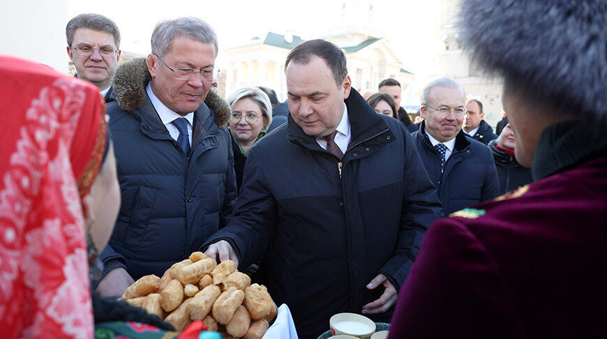 9 февраля, Минск /Корр. БЕЛТА/. Премьер-министр Беларуси Роман Головченко и глава Республики Башкортостан Радий Хабиров посетили гастрономический фестиваль "Башкортостан гостеприимный". Мероприятие развернулось у Минской городской ратуши, передает корреспондент БЕЛТА. Почетные гости ознакомились с представленной продукцией, оценили развлекательную программу. Фестиваль с национальным колоритом проходит в белорусской столице 9-10 февраля. В программе - национальные игры, мастер-классы, презентация туристического потенциала Республики Башкортостан, дегустации национальных блюд (бишбармак на казане, башкирский плов, кумыс), мастер-классы по приготовлению блюд. Жителей и гостей столицы своим творчеством порадуют артисты Республики Башкортостан Тимур Рамазанов, Ильнур Хайруллин, Фарида Газзалова, Лилия Ишемьярова и другие. Праздник проводится в рамках международного бизнес-форума "Беларусь - Башкортостан".-0- Фото Павла Орловского