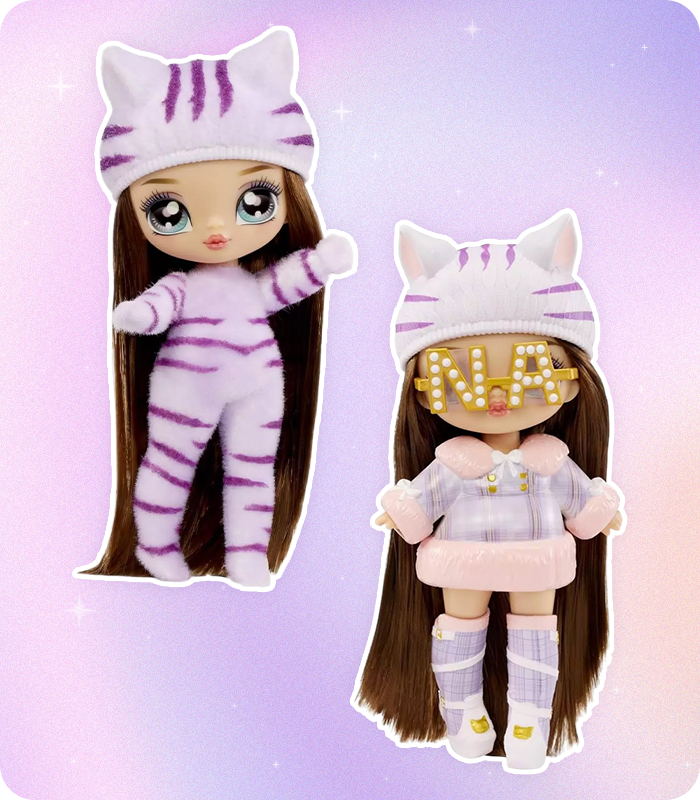 Привет родителям, у которых в кукольном отделе начинает нервно подрагивать глаз. Мы с вами! Порой выбор той самой подходящей игрушечной подружки для девочки может стать настоящим испытанием. Не спешите покупать очередную Барби, ведь есть столько всего интересного в кукольном мире! Подобрать классную куклу из новинок 2023-2024 поможет наша подборка. В некоторые мы не против поиграть и сами! Мы любим наших читателей. А еще любим классные товары! Чтобы вы не потерялись в огромном мире бьюти-средств, мы на портале подбираем только то, что пробовали сами или купили бы себе. Кошечка Кэтти, Na! Na! Na! Surprise У куколки Кэтти длинные каштановые волосы, большие голубые глаза и модный наряд, вдохновленный полосатым окрасом котенка-табби. А самое главное — под меховым сиреневым комбинезоном скрывается второй образ: пальто, шапка и сапожки! Ну, и очки, конечно, просто шикарные! Где купить: Wildberries Читайте также: 17 очаровательных подарков для девочек, которые обожают все мимишное Кайли Джен