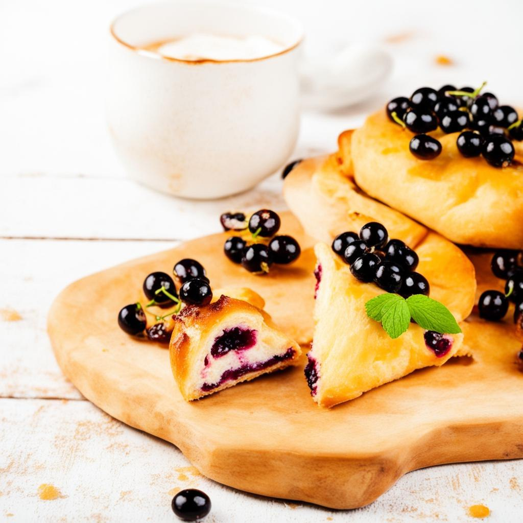 - Посыпьте черную смородину по тесту на противне, оставив немного места по краям.