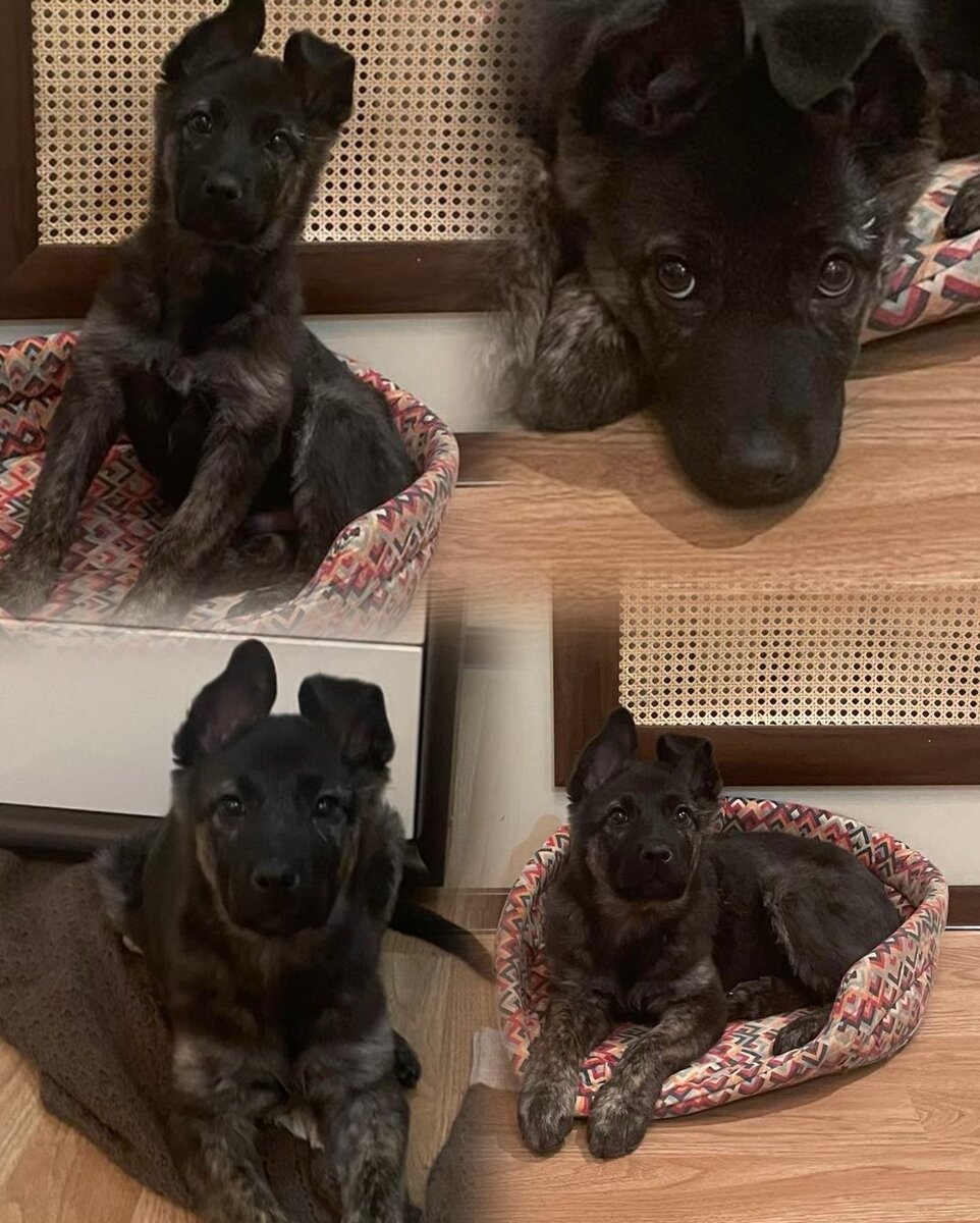 Щенок, пока квартирного содержания, так как на улицу ему еще рано.