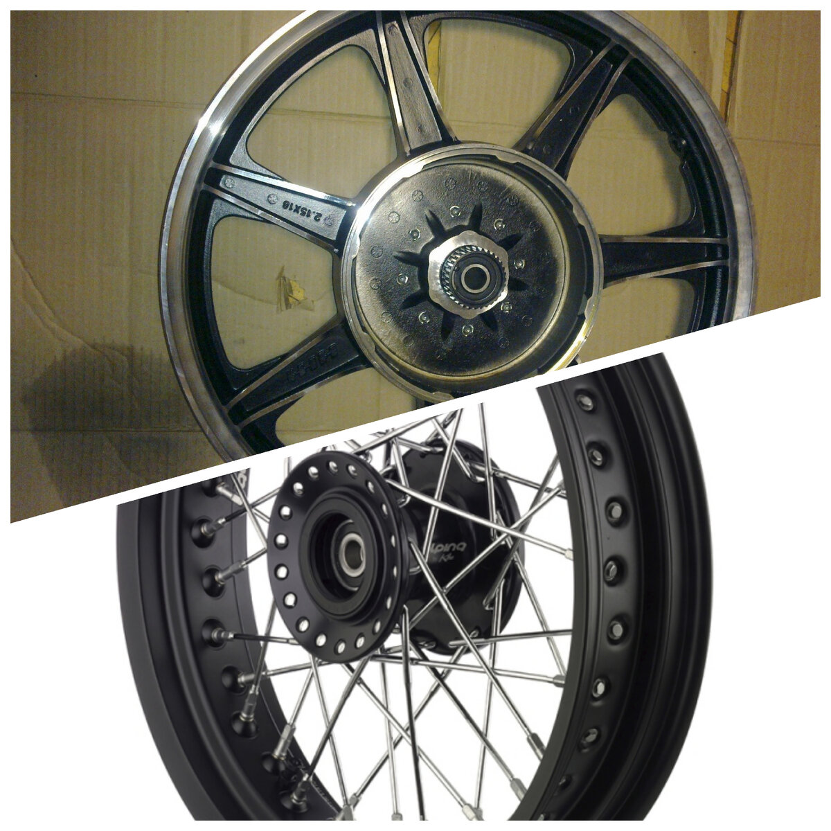 Большинство мотоциклетных колес подпадают под одну из двух категорий. Встречаются спецованные колеса и цельно металлические. В чем разница и какая конструкция лучше? Я объясню в этой статье от порядочного. В 60-х колёса у всех мотоциклов были спицованными. Затем, в 70-х, на арену выкатили цельно металлические. И сегодня большинство мотоциклов комплектуются вот такими колёсами. Но мы всё ещё видим спецованные колёса на ретро байках. Спицованные колёса всё ещё удерживают огромную долю на рынке благодаря тому, что они обходят литье по одному ключевому показателю прочности. Спецованные колёса более гибкие, податливые, и поэтому они лучше переносят грубые жёсткие поверхности. Именно поэтому их и ставят на мотоциклы кроссового типа. Спицованные колёса также проще в ремонте, если что то случится и ты помнешь обода или, повредишь спицы, ты сможешь заменить отдельные части. Тем временем литые диски хрупкие, и обычно, когда они не справляются, они ломаются, и ты попадаешь на новое колесо целик