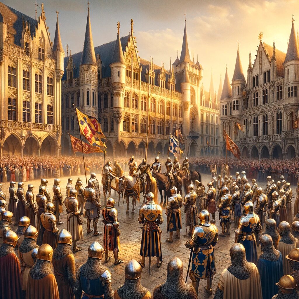 Люди бросали цветы перед солдатами, лошади давили букеты копытами, а маршал Глифтан энергично махал рукой, сопровождая величественное шествие. Король демонстрировал себя как истинный правитель, величаво и непреклонно, словно вся эта пышная картина была всего лишь частью его утреннего ритуала.