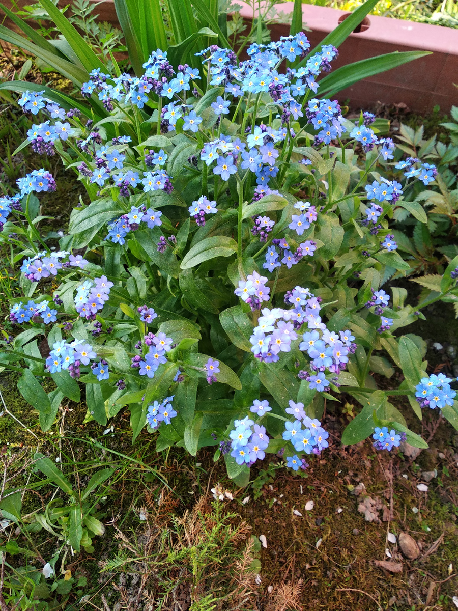 Чтобы разглядеть истинную красоту этого растения, надо просто дать ему волю) Первую незабудку я вырастила из семян. Когда она отцвела и потеряла декоративность, вырвала кустики и потрясла ими в месте, где мне хотелось увидеть эту чарующую голубизну на следующий год.
