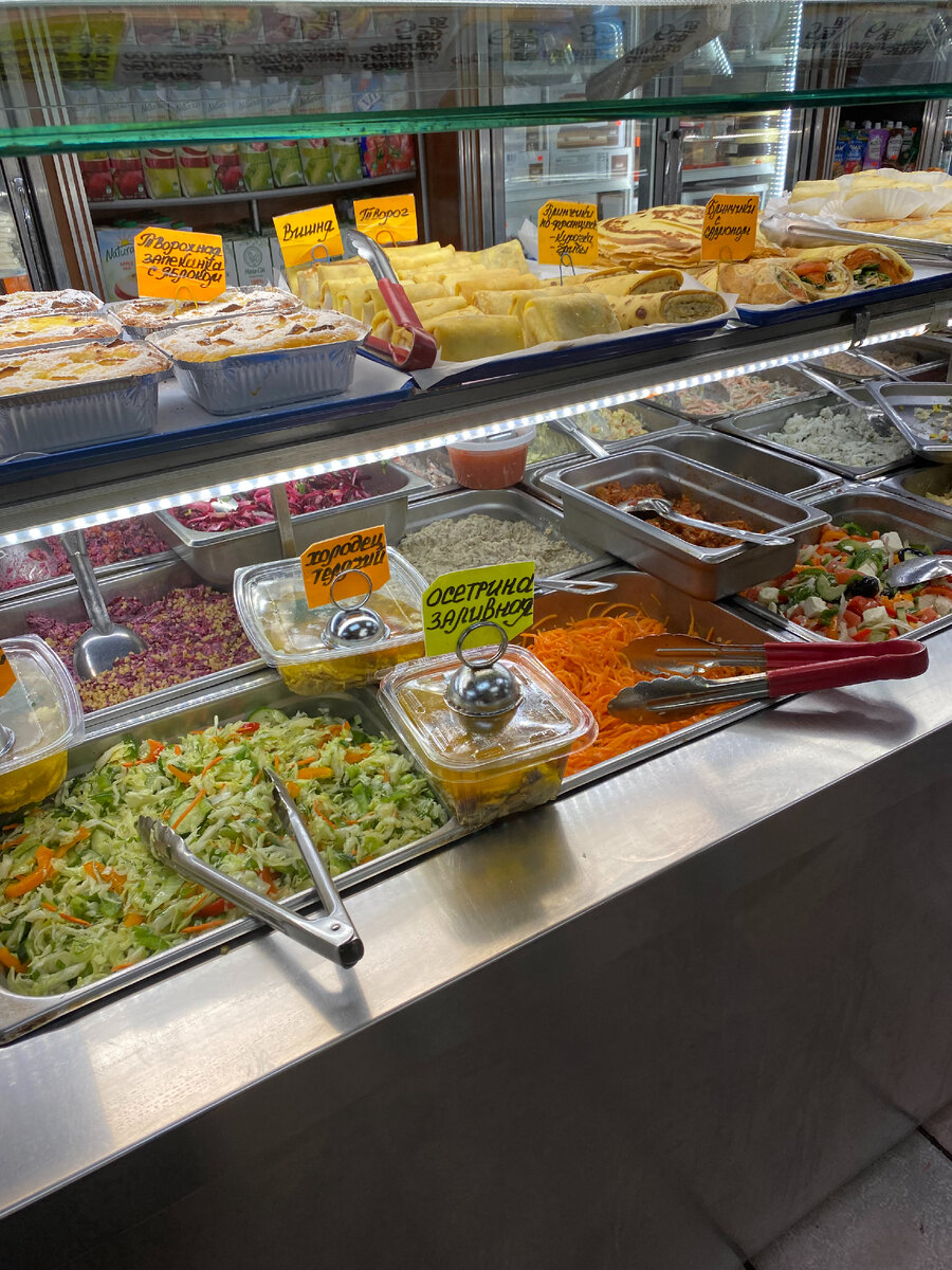 Когда я впервые оказалась на Брайтон Бич, то первое, что я сделала (помимо посещения книжных магазинов и разных других мест), так это решила посетить знаменитую местную кулинарию, которая, надо признаться, действительно изобилует самыми разнообразными блюдами, и не только русской, но и узбекской, грузинской, армянской, молдавской и еврейской кухонь. Даже самый привередливый гурман не сможет пожаловаться на отсутствие вкуса или качества предложенной этими магазинами еды. Все блюда весьма искуссно и с любовью приготовлены, так что только пальчики оближешь. Тут есть: холодец всех видов (куриный, телячий), заливное из осетра, пирожки с начинкой на любой вкус, классические салаты (винегрет, селедка под шубой, оливье, крабовый салат), шашлыки, котлеты, куриная грудинка, обжаренная в яйце, гуляш, печеный картофель с грибами, блинчики, торты, различные виды рыбы (копченой или соленой), различные маринованные овощи, супы и многое, многое другое. Но самым шокирующим опытом, лично для меня, стал