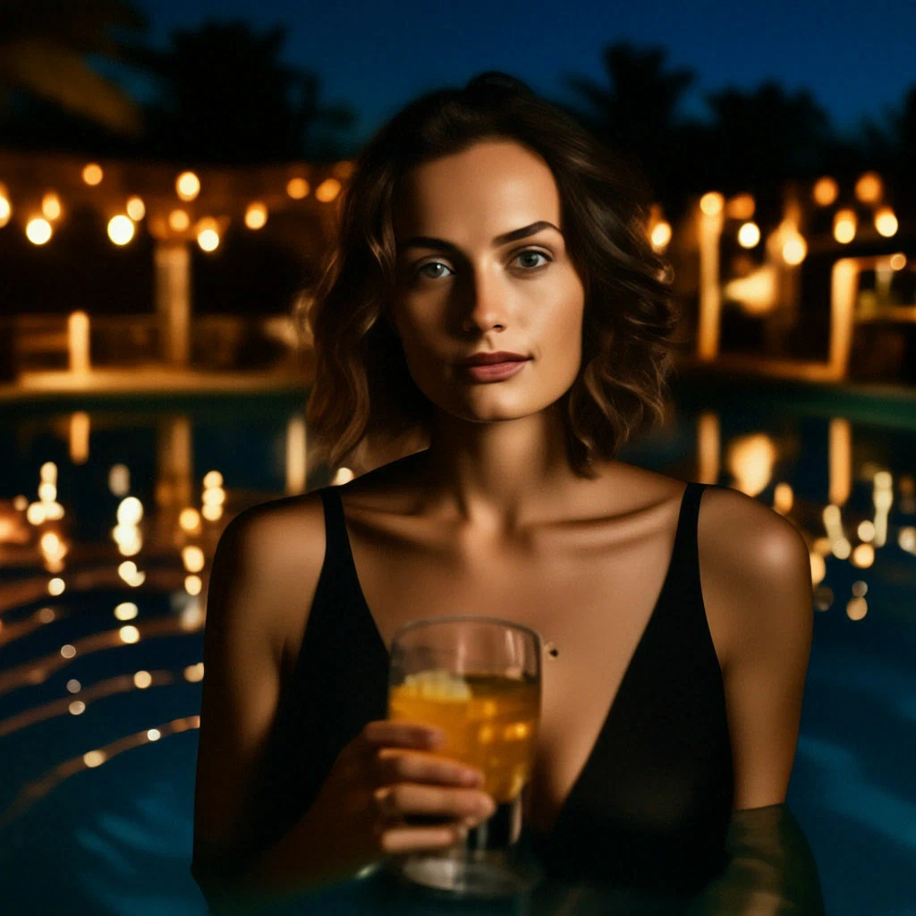 Голова немного затуманилась после выпитого алкоголя и Лена вышла из бассейна. Она прилегла на шезлонг и устремила свой взгляд на звёзды, продолжая медленно потягивать через трубочку коктейль.