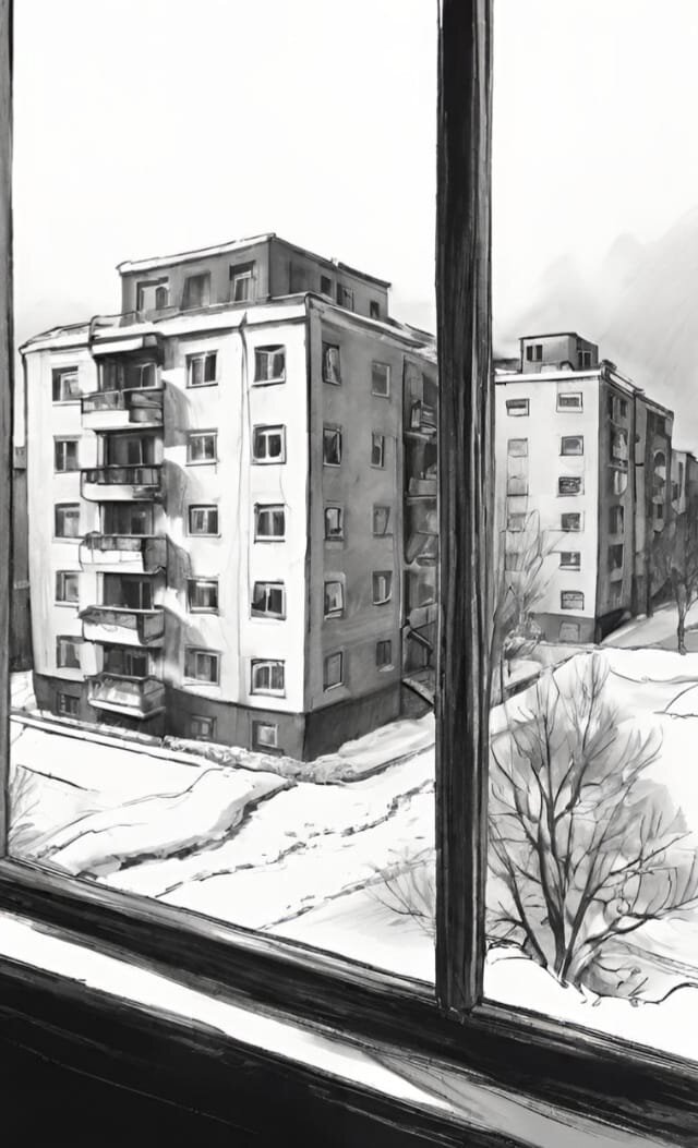 Змей лежал на подоконнике и смотрел в окно. Майя встала рядом. Серые дома, серое небо, белый снег, кое-где чёрный асфальт. А стекло грязноватое, скажем прямо.