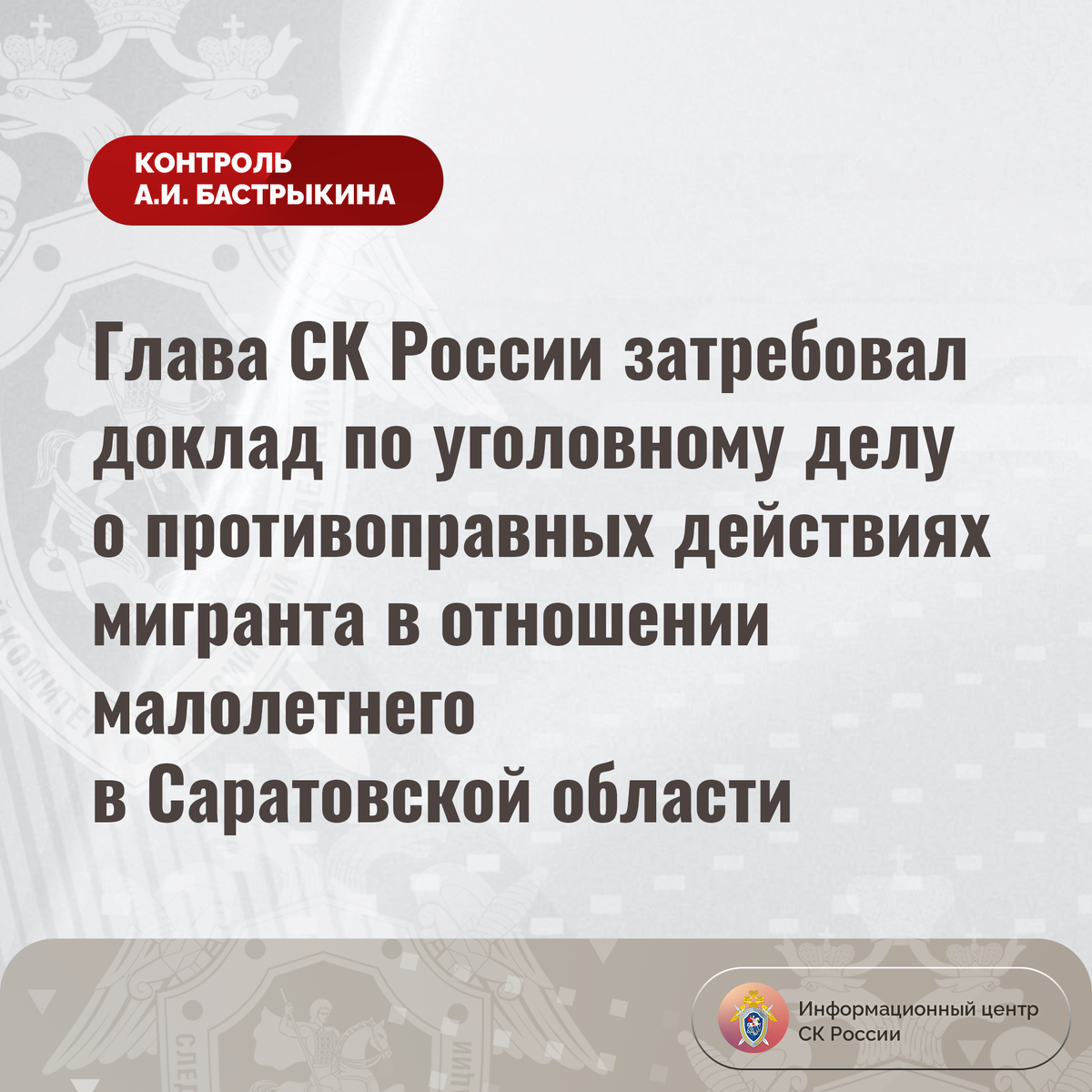 Глава СК России затребовал доклад по уголовному делу о противоправных действиях мигранта в отношении малолетнего в Саратовской области