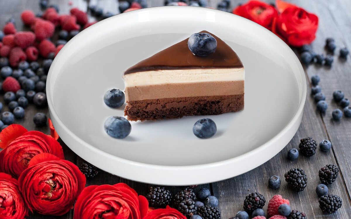Насыщенный корж с ярким вкусом какао, два слоя нежнейшего мусса и глянцевый ганаш. Этот роскошный десерт — настоящий праздник для любителей шоколада. Ингредиенты для нижнего слоя Сливочное масло 6 ст. ложек + для смазывания Яйца 4 штуки Горький шоколад 210 г Ванильный экстракт 1½ ч. ложки Соль 1 щепотка Коричневый сахар 70 г Ингредиенты для среднего слоя Желатин 2½ ч. ложки Вода 4 ст. ложки Тёмный или молочный шоколад 210 г Сливки с жирностью 33% 360 мл Соль 1 щепотка Сахар 1 ст. ложка Ингредиенты для верхнего слоя Желатин 2½ ч. ложки Вода 4 ст. ложки Белый шоколад 180 г Сливки с жирностью 33% 480 мл Ингредиенты для ганаша Тёмный или молочный шоколад 120 г Сливки с жирностью 33% 60 мл Приготовление