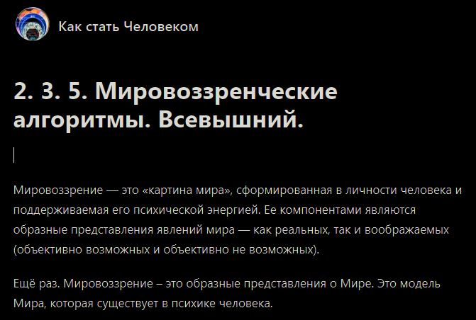 Из всего выше сказанного надо понимать, что психика человека, его мировоззрение и миропонимание состоит из определенного набора мировоззренческих алгоритмов.