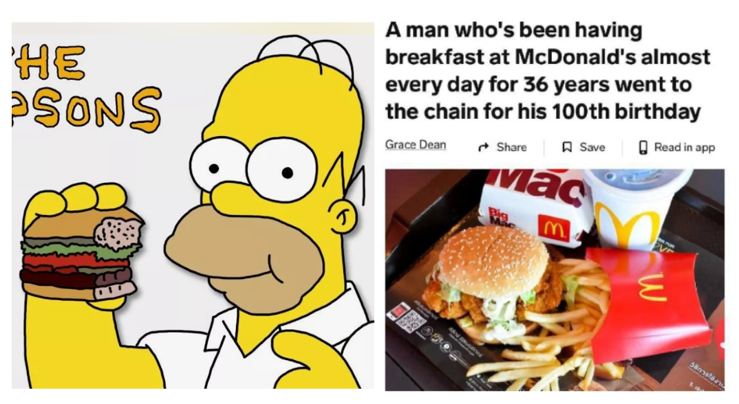 Говорят, что фаст-фуд вреден для здоровья, я тоже так считаю. Но есть такие фанаты, которые закрывают на это глаза. 1. 100 лет - не повод не ходить в Мак Например, 100-летний дедушка из Западной Вирджинии не считает фаст-фуд вредным. Кажется, наоборот, ежедневная еда в Макдо продлила его жизнь. Зэн Уайт уже 36 лет завтракает в Макдо. Всего-то - не любит готовить, а на пенсии вступил в клуб "ROMEO" (Пенсионеры, обедающие в ресторане) и практически каждый свой день начинал в Макдо. Практически - это очень-очень редко не ходил туда. Свой 100-летний юбилей отметил там же. Собирается и дальше питаться в своем любимом кафе. Но почему дожил до 100 лет - понятия не имеет. 2. Не всем приносит пользу А вот жителю Австралии не так повезло с обменом веществ. С 14 лет Дамиан Бургойн питался в Макдо. Братья остались без отца, и пошли работать в известный ресторан быстрого питания. В итоге к 30 годам он весил 215 кг, и не мог вставать с постели. Но молодой чел все-таки не только завтракал маковской