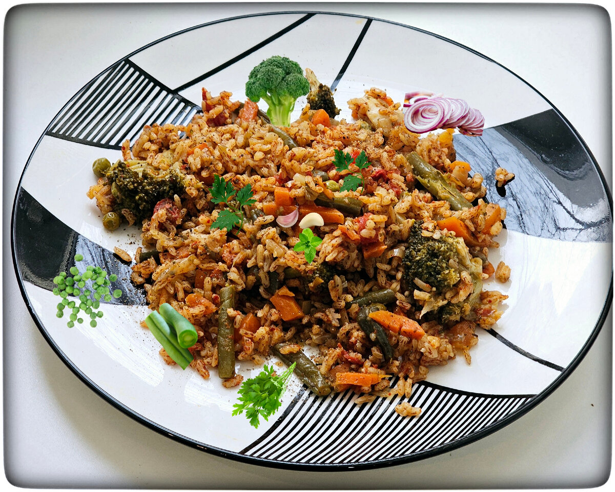 Плов - традиционное блюдо среднеазиатской кухни, которое готовится из риса, мяса и овощей. В зависимости от региона, плов может быть приготовлен с использованием различных видов мяса, овощей, специй. Как, с чем готовить, решать Вам. Сегодня мы готовим блюдо для людей, которые хотят нормализовать свой вес. Сочетание углеводов (риса) и насыщенных (животных) жиров (в мясе) - самое неприятное, для тех, кому надо сбросить вес. И, еще хочу обратить внимание на ГИ (гликемический индекс), у разных видов риса он может быть разным. Для нормализации веса и здоровья мы берем продукты с ГИ меньше 50. Думаю, ни для кого не секрет, что рис довольно крахмалистый, именно, крахмал мешает нормализации веса. В процессе пищеварения крахмал за считанные минуты превращается в глюкозу — повышая уровень сахара в крови. Удивительно, но так бывает, что нужный продукт сам тебя находит. Вот и я, войдя в магазин 5-терочка, наткнулась на бурый рис. Стоимость не порадовала, но купила и решила приготовить плов с овощ