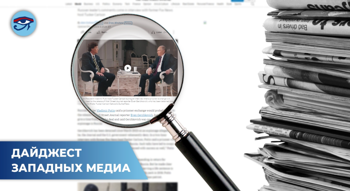 Эта неделя прошла под знаком интервью Такера Карлсона, которое тот взял у российского президента Владимира Путина. Вряд ли будет преувеличением сказать, что сей инфоповод просто-таки взорвал западные медиа, заслонив собой, пожалуй, даже отставку Валерия Залужного с поста главкома ВСУ. Однако несмотря на это, в мировых СМИ нашлось место и для истории безвременно ушедшего кота Твикса, и для нападок на российско-немецкого политолога Владимира Сергиенко, которого журнал Spiegel вместе с группой «журналистов-расследователей», тесно ассоциированных с британскими спецслужбами, обвинил во всех смертных грехах, не подтвердив обвинения сколько-нибудь серьёзными доказательствами.