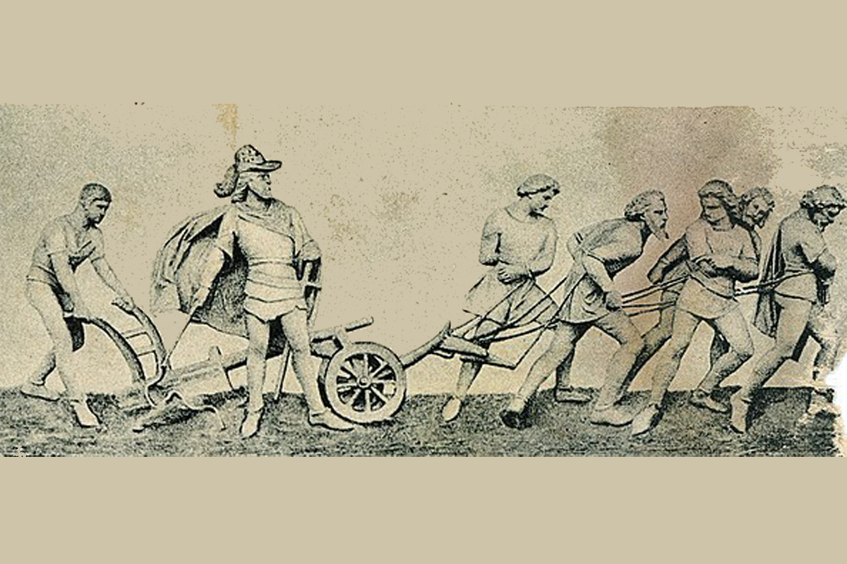 "Он сажает их перед плугом, берёт бич, толкает их вперёд ударами и вспахивает ими целое поле"