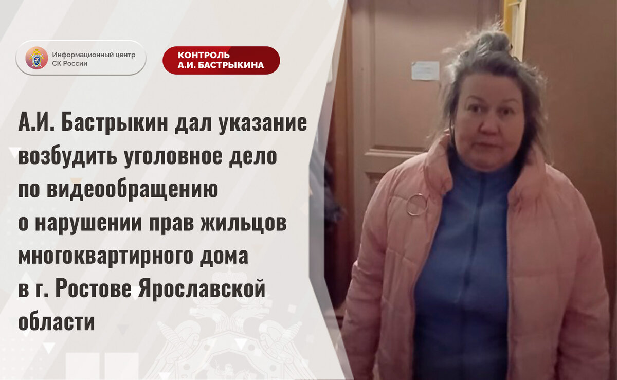 А.И. Бастрыкин дал указание возбудить уголовное дело по видеообращению о нарушении прав жильцов многоквартирного дома в г. Ростове Ярославской области