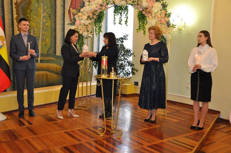 В Курскую область доставлен огонь семейного очага «Сердце России» из Дворца бракосочетания на ВДНХ. Он зажжён на Всероссийском семейном форуме «Родные-любимые» на выставке «Россия» в Москве. Лампада была привезена из Свято-Троицкого монастыря в Муроме, где находятся мощи святых Петра и Февронии – покровителей семьи и брака. В Курск лампаду с огнем привезла молодая семья Лазаревых. Олега и Марии заключили брак в день Курской области на международной выставке-форуме «Россия» 11 января. Лампада с огнем семейного очага будет храниться в управлении ЗАГС Центрального округа Курска. Галина Эймонтене, как «хранитель» этого огня, передала его частичку руководителям отделов ЗАГС администраций Железнодорожного и Сеймского округов. В дальнейшем каждый орган ЗАГС региона сможет получить свою частичку семейного очага, рассказали в комитете ЗАГС Курской области. Лампада с огнем семейного очага передана также в Курскую епархию. Иван ПРОХОРОВ, фото комитета ЗАГС Курской области Постоянный адрес новости