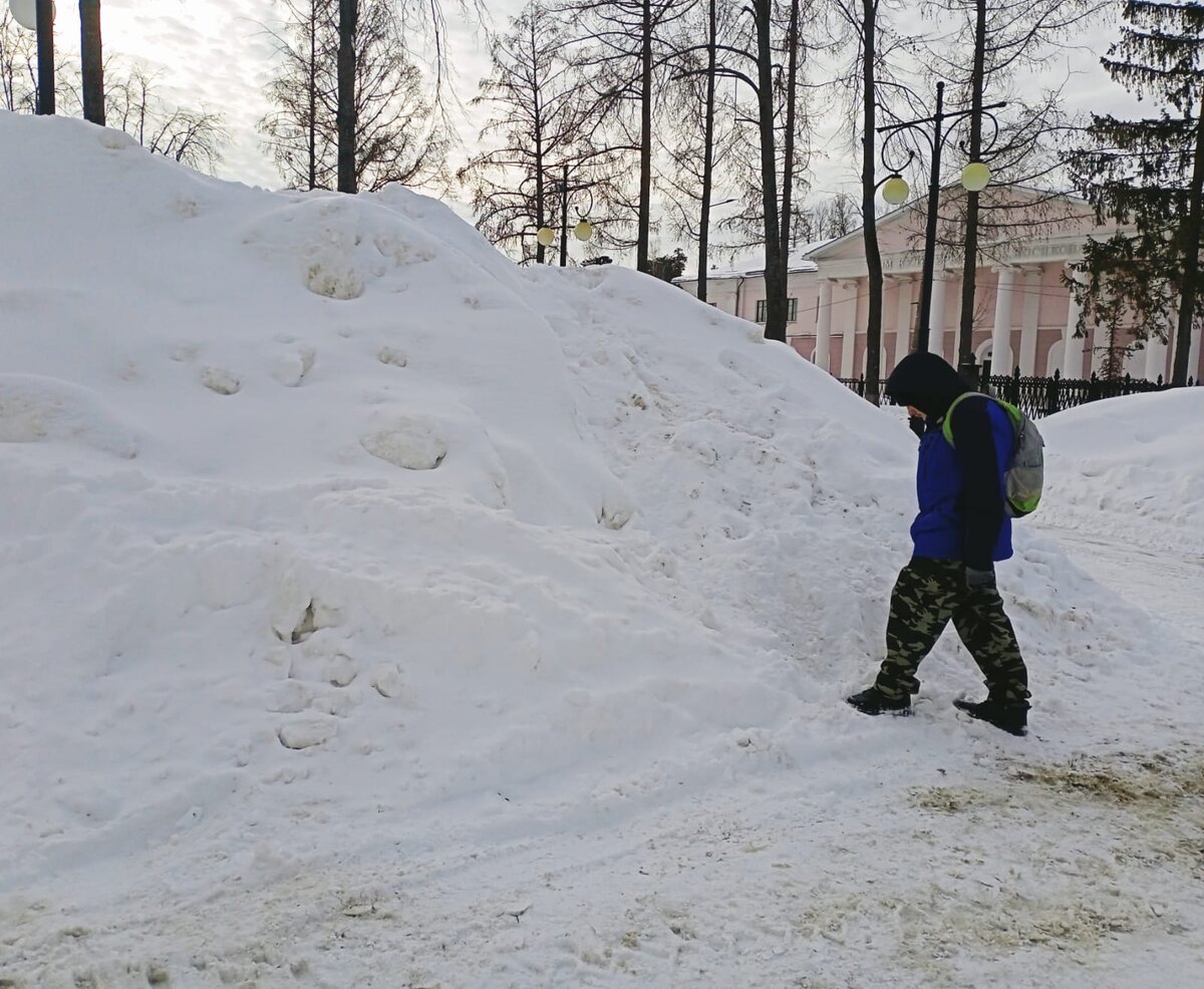 Вот этот на площади. Сфотографировать сложно. Но да, это не гора. Это снег, который сдвигают с площади. А так как площадь на холме, видимо, машины не могут подъехать и забрать. По городу вообще снег вывозят. А это сугроб возле забора у нас во дворе. Снег, который с него тоже сдвигают. И вот так на общем плане. Конец. П.С. А у вас как с сугробами? __ МИГ.