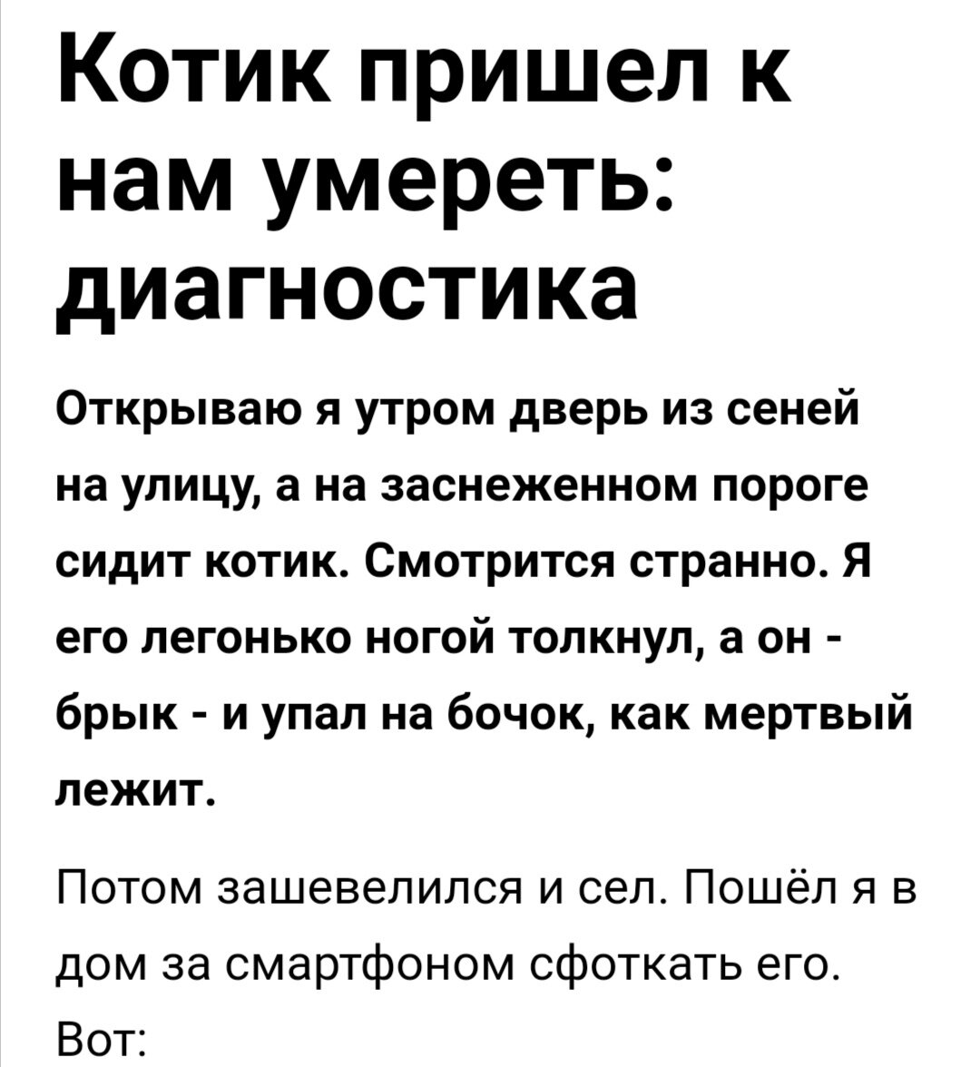 Так получается, что ко мне уже несколько котиков и даже ежик пришли умирать. Вот очередной случай: и там тихонько сидел. Почва на мордочке - это котики "лечатся" поедая почву - видимо инстинкт. И вот диаграмма по наполненности чакр: По седьмой в минусе даже. Последние данные за то, что 7-я чакра у животных не функционирует вообще. Зато возможно есть минус первая - "хвостовая" чакра. Как то так. Это перепост статьи из 2022 года.