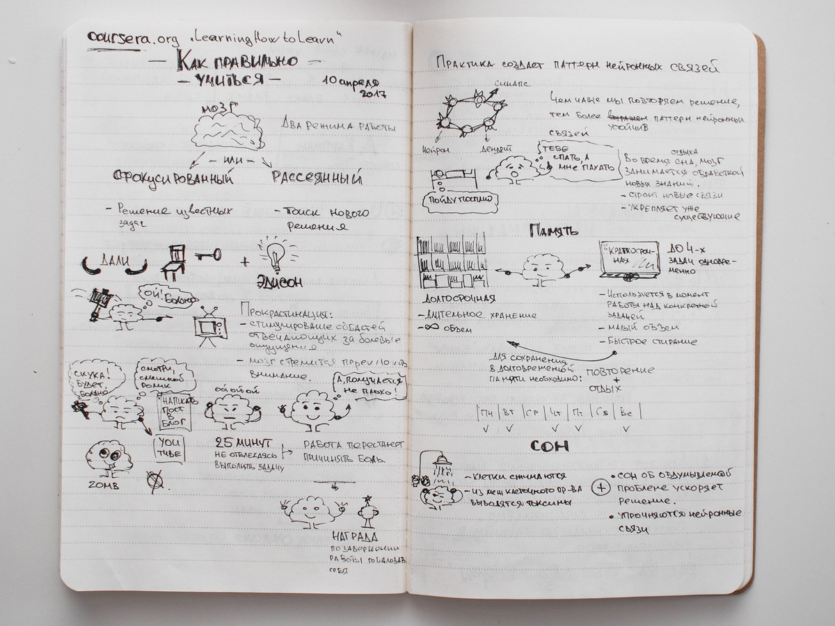 После окончания курса Learning How to Learn на coursera.org решил сделать краткий конспект. В этом посте узнаете, как учиться с максимальной отдачей, запоминать больше, бороться с прокрастинацией, а также о пользе сна.