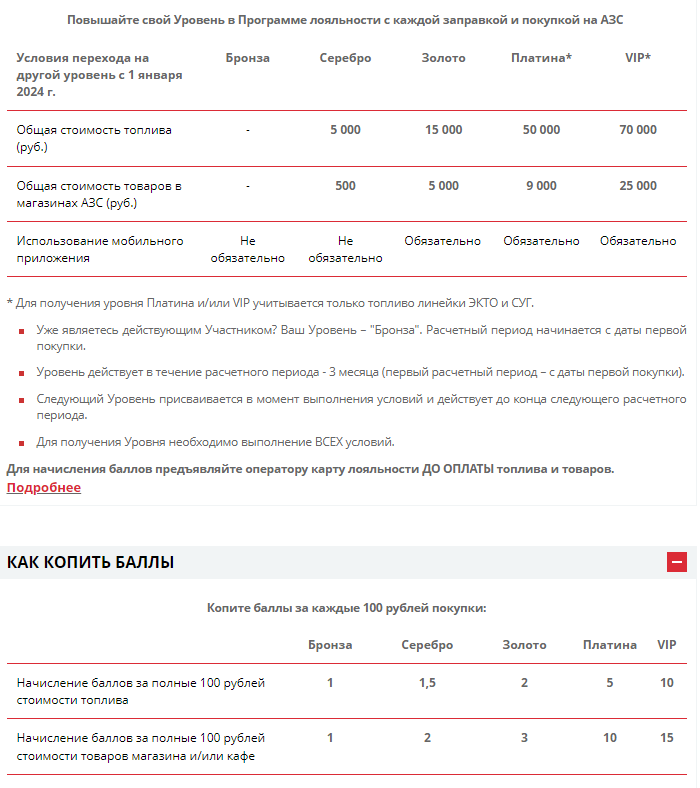 Ранее я писал статью про сравнение систем лояльности у Роснефти и Тебойл. Здесь же я расскажу про сравнение Газпромнефть и Лукойл. Напомню мои потребности - ежемесячный расход 10000р. (200 литров) 92-го бензина. Что нам может предложить Лукойл? Как видим, даже на Серебряный уровень лояльности помимо топлива необходимо приобрести товаров на 500р в месяц. А на золото так и вовсе на 5000р!!! Если заправляться раз в неделю, то за каждую заправку необходимо оставлять в магазине Лукойла 1250р. Лично мне непонятно, что там можно приобретать на такую сумму каждую (!!!) неделю. Для расчета бонусов возьмем 2 уровня - Бронза и Серебро. В случае бронзы мы получим 1 балл за каждые 100р, в точности как и у Тебойл. В случае серебряного уровня и покупок на 500р в месяц мы получаем 1,5 рубля за каждую сотню, потраченную на бензин, и дополнительно по 2 балла за потраченную сотню в магазине/кафе. Итого 150 + 10 = 160 бонусов. Не густо. Переходим к изучению лояльности АЗС Газпромнефть. Эта сеть АЗС, к