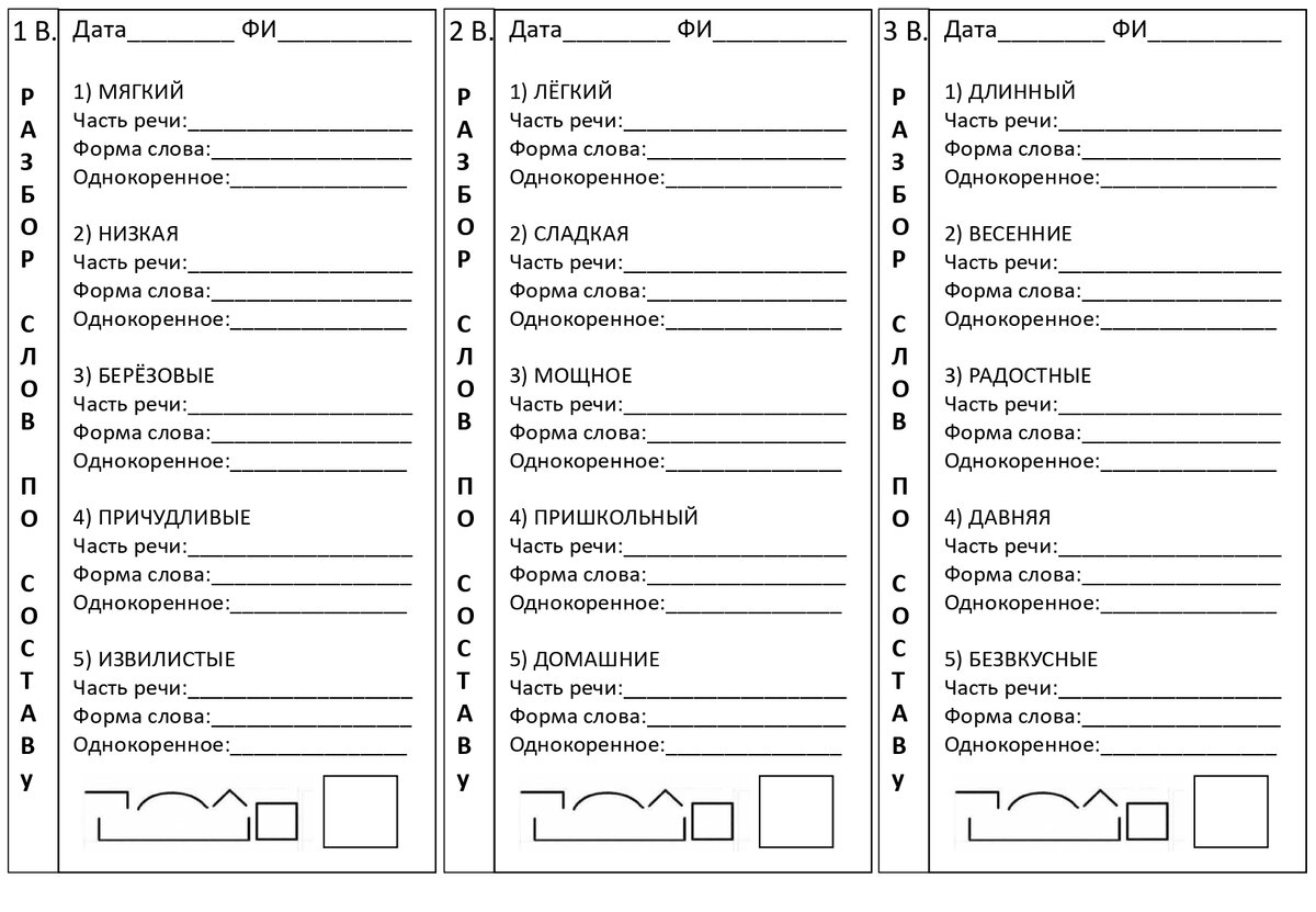 Мои ученики карточки уже "испытали", результаты меня порадовали. При разборе слова обязательно определяем часть речи, изменяем форму слова и образуем однокоренное слово. Одновременно отрабатываем эти трудные для понимания ребят понятия. Конечно, решаем много вариантов...