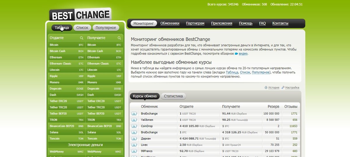 Мониторинг обменников BestChange - как менять и зарабатывать на отправке денег в разные страны.