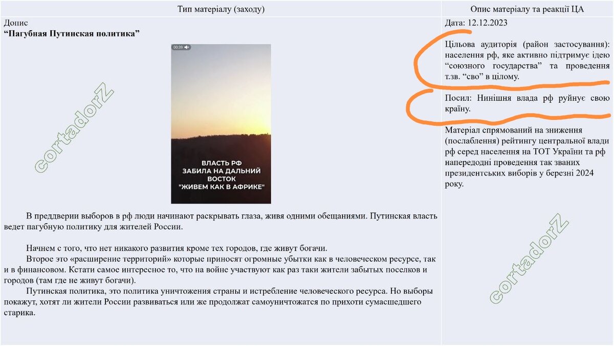 Обязательно к прочтению всем! Возможно вы столкнетесь конкретно с этими темами или уже столкнулись. Обратите внимание, что в некоторых скринах есть ссылки, где украинское ципсо уже ведёт работу по дискредитации нашей страны, власти и президента Я буду публиковать скрины и подчёркнутое переводить В первой части тип материала, во второй - задание. Вообще, задания любопытные. Одну тему я уже встречала здесь, на Дзене, про Челябинск и была она на одном из каналов-ферм, которые процветают. Не могу сказать, что там было написано, просто я ж родом оттуда, мелькнула перед глазами, тему "зацепила" и поняла, что "фермерский" канал, читать не стала, теперь жалею. Каждый скрин увеличивается, прочитайте, пожалуйста, тип материала, просто "сфотографируйте" глазами, думаю пригодится Целевая аудитория: жители России, поддерживающие идею союзного государства и СВО Посыл: эта власть губит страну Целевая аудитория: жители России и освобожденных территорий Посыл: предвыборная кампания демонстрирует бес