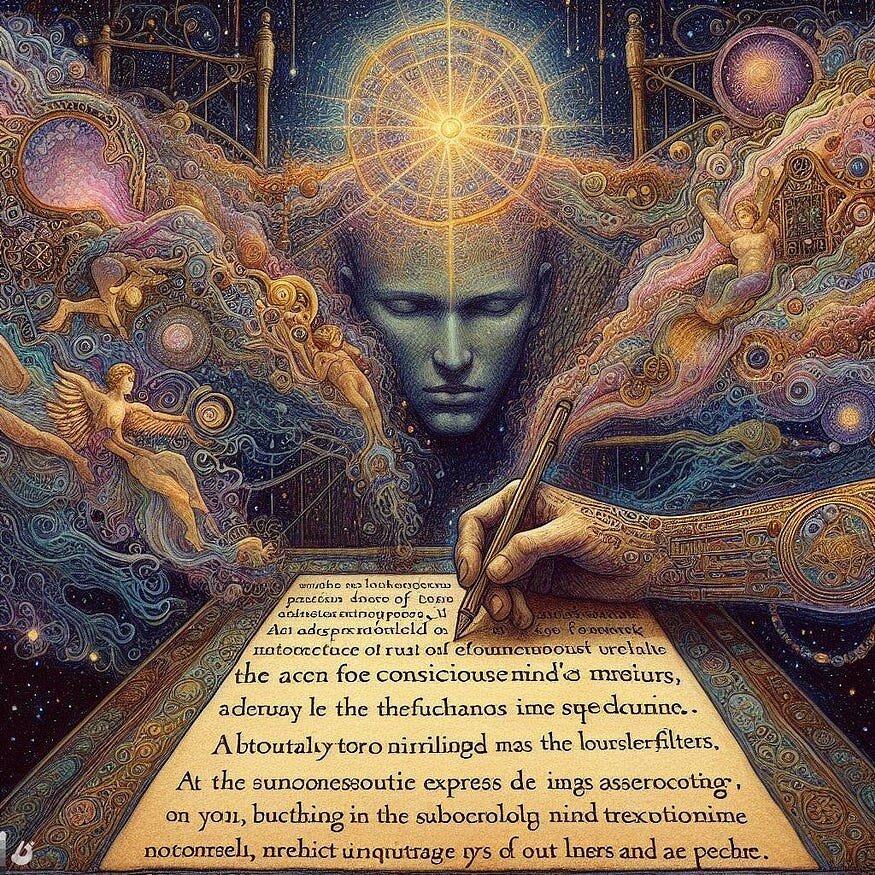 Автоматическое письмо — это мистический мост в подсознание. Эта практика позволяет нам обойти фильтры сознания и напрямую получить доступ к богатым, неизведанным слоям нашей психики. С ручкой в руке мы позволяем подсознанию говорить, записывая без осуждения и ожиданий. Этот поток слов и образов незаписан, сыр и откровенен. Это форма духовного общения, при которой высшее «Я» выражает себя через язык подсознания. В процессе автоматического письма мы обнаруживаем истины о себе, которые молча ждали, чтобы их признали, вынося их на свет нашего сознательного осознания.