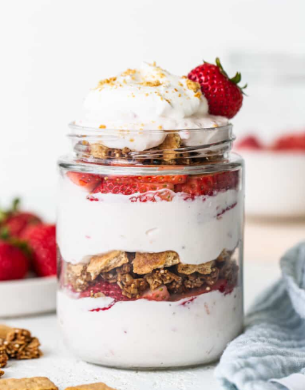 Этот отличный порционный десерт с высоким содержанием белка, готовится всего за 10 минут. Ингредиенты: Способ приготовления: 1. Добавьте творог в высокоскоростной кухонный комбайн или блендер. Взбивайте на высокой скорости до полной однородности. Добавьте клубнику и мед и взбивайте, пока смесь не станет розовой. Будьте осторожны, не перетирайте клубнику слишком сильно, а то она превратится в жидкость. 2. Выложите смешанный творог в миску и добавьте греческий йогурт. Перемешайте до загустения. 3. Выложите творожную смесь, нарезанную клубнику, мюсли и раскрошенные крекеры слоями в банку. 4. Ешьте сразу или накройте крышкой и храните в холодильнике до 3 дней. Контент на канале обновляется каждый день, поэтому не забывайте подписываться, чтобы не пропустить новые рецепты! Также буду очень рада вашим лайкам и комментариям!