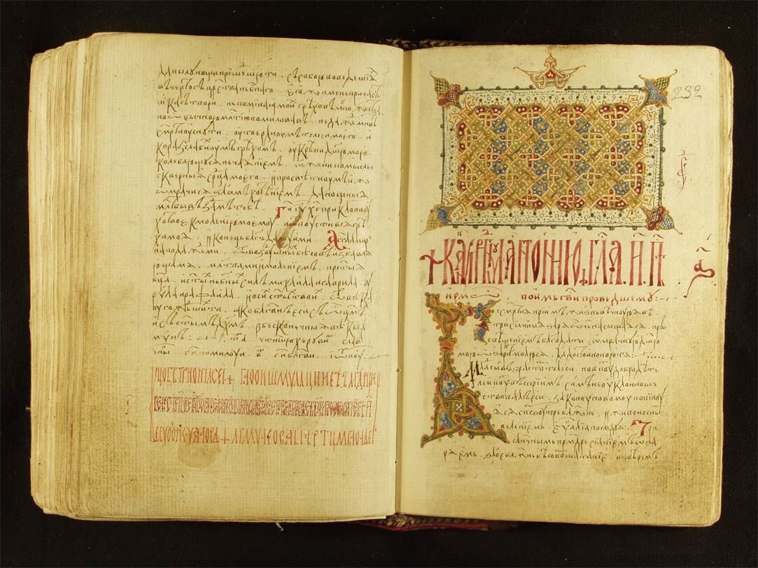 - Различный стиль иллюстраций на примере книг: «Мстиславово Евангелие» с добавлением византийского орнамента, «Федоровское Евангелие» с отголосками комниновского искусства, «Хлудовское Евангелие», украшенное чрезвычайно «живыми» по композиции миниатюрами в лучших традициях палеологовского искусства, «Псалтирь Грозного» с обилием театрологического орнамента, «Псалтирь Спиридония, или Киевская Псалтирь»,отличившаяся изящными миниатюрами на полях и посреди текста рукописи.