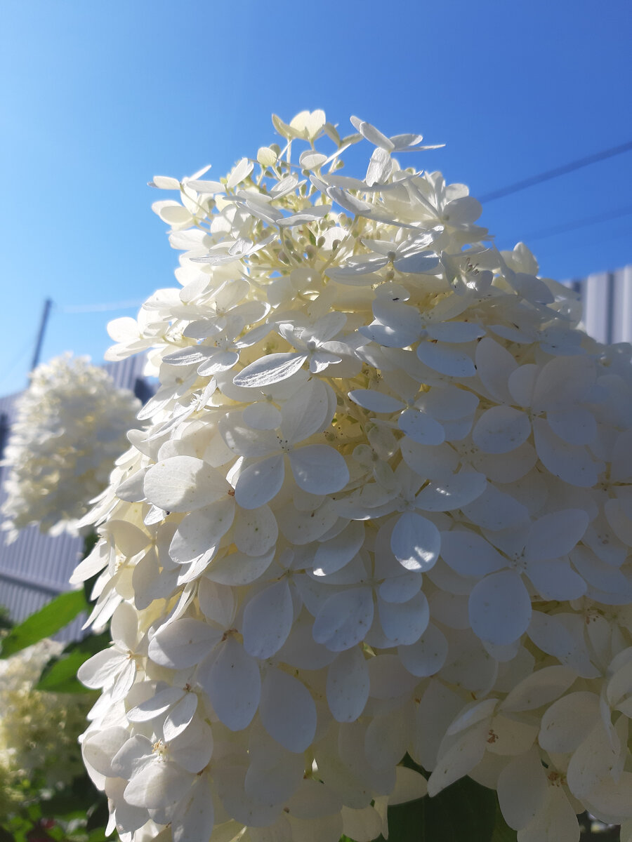 Эта гортензия уникальна по цвету! Она изумительно красива весь сезон - от сливочных оттенков начала цветения в июле - до ярких насыщенно-розовых осенних тонов! А ее переходы к розовому - это такая палитра, что взгляд не отвести - хочется любоваться и любоваться! Прошлогодняя весна 2023 - это квест на выживание. Апрельская жара 2 недели до 25 градусов выгнала в рост гортензии - и к 9 мая они все были с побегами и листьями. И вдруг - 3 дневные заморозки -10. Это был ад для сада! Всех не укрыть! Бедные кусты с отмороженными ветками.... обрезала мертвые стебли и боялась - не переживут... Но выжили и стали расти как им вздумается! Поэтому форма у кустов такая растрепанная. Я не трогала их - зачем лишний стресс. И так досталось гортензиям. Но и в самовольном росте они красавицы! И пусть, что цвести начинали новыми ветками даже осенью. Палитра была необыкновенной - одновременно на кустике и розовые, и белые соцветия. Но все по порядку. К осени размеры достигли вот какие! Плотные огр
