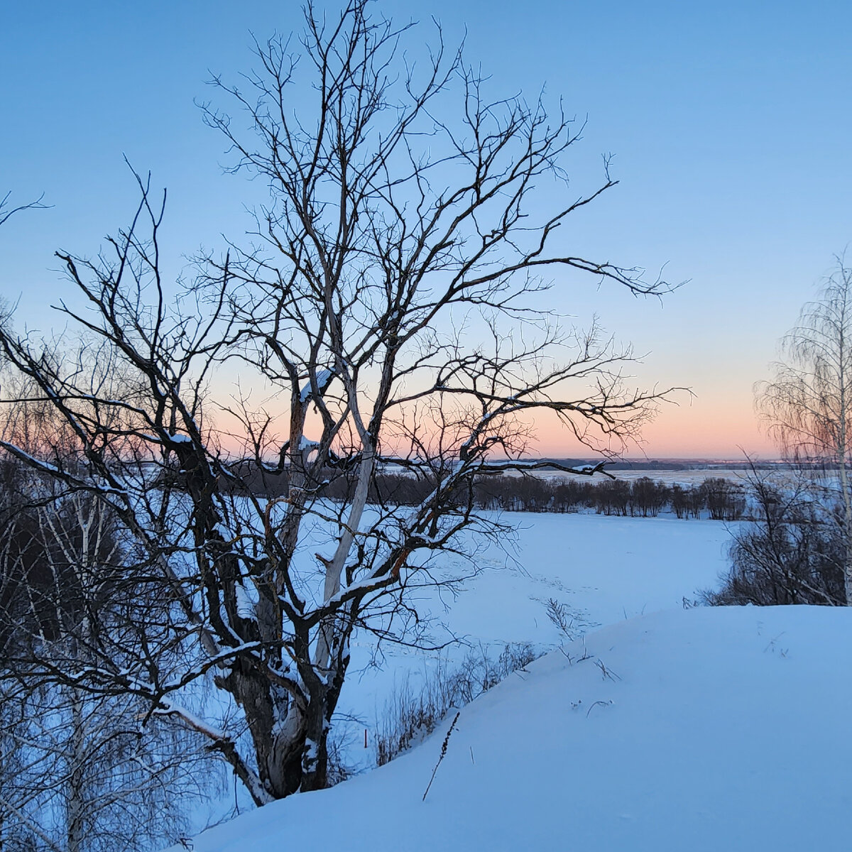 В последней трети зимы уже почти не остается сил ждать весеннего тепла. Выглядываешь зеленые травинки над теплотрассами, радуешься редкому солнцу, отогревая потом дома замерший нос. Снегопады и морозы не утихают. В зиме есть и свое очарование: иней и снег, превращающие деревья в сказочный лес, нежные оттенки заката и рассвета. И просто мой любимый белый цвет повсюду. Ниже подборка снимков за последний месяц. Крутые берега Оки хороши летом и зимой: Шиповник цепляется за склон земляного вала, оставшегося от древнего русского города: В морозные дни можно наблюдать спецэффекты. Гало на закате: Закатное небо иногда кажется нереальным, нарисованным красками на холсте: Ушедшее за горизонт солнце и нависающие низкие облака дают странный эффект - кажется, еще немного, и тучи упадут на землю: В сильные морозы Ока замерзает полностью, и по льду можно ее перейти. Но лучше бы этого все-таки не делать. Пусть рыбаки и ловят здесь рыбу до самого ледохода, запасной жизни ни у кого нет. Подо льдом оч