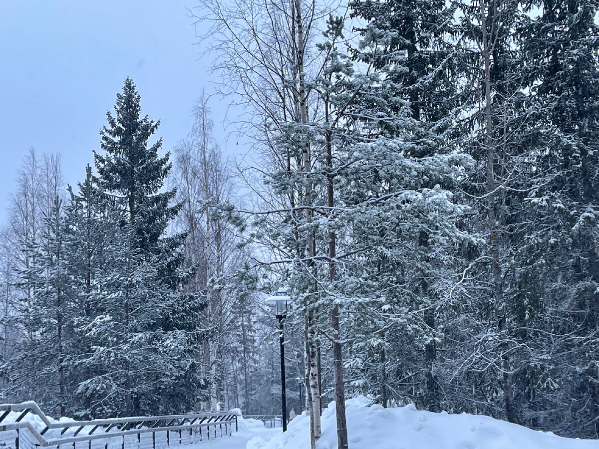 Ну, во-первых, зима в Карелии всегда снежная. Пушистые снежные покрывала так красиво смотрятся на елях. Это какой-то эталонный зимний пейзаж.