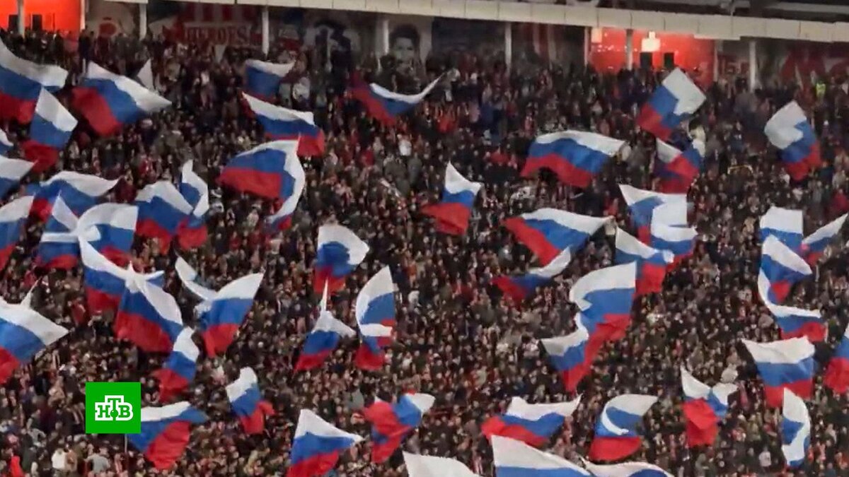 [ Смотреть видео на сайте НТВ ] Болельщики сербского клуба «Црвена Звезда» пришли на футбольный матч с российскими флагами. На главном стадионе Белграда болельщики ведущего клуба Сербии «Црвена Звезда» во время матча национальной Суперлиги развернули на трибунах более сотни российских триколоров. Также звучало: «Русские и сербы − братья навек!». Сербские болельщики устроили настоящее патриотическое представление, пели песни на манер «Калинки-малинки», а под занавес встречи выложили с помощью красно-белых плакатов символ российского клуба-побратима — «Спартака». В марте в Москве запланирован товарищеский матч сборных России и Сербии. [ Смотреть видео на сайте НТВ ]